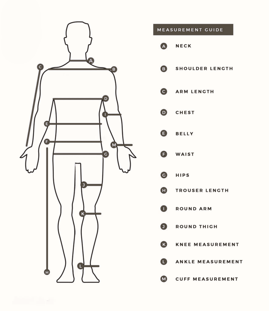 Custom Measurement Meaurement Details Please Fill the form correctly and use the image as reference Name Email Phone Number Neck Shoulder Length Arm Length Hips Trouser Length Round Arm Round Thigh Knee Cuff Shirt/Cuff Jacket Length Head Size Agbada/Kimono Height Weight Send Let's Bring Your Style to Life Looking for a custom-made dress, suit, or traditional wear? Share your measurements, fabric preference, and design idea. GET IN TOUCH